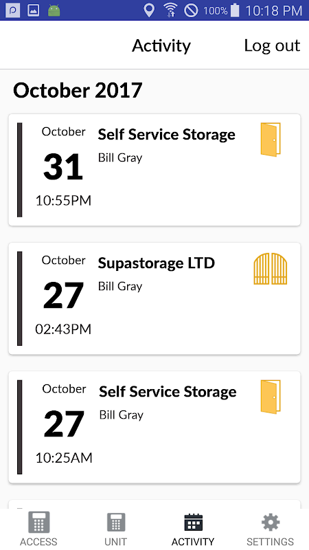 Portes ouvertes, des portes et des ascenseurs pour vos unités de stockage à partir de votre appareil.