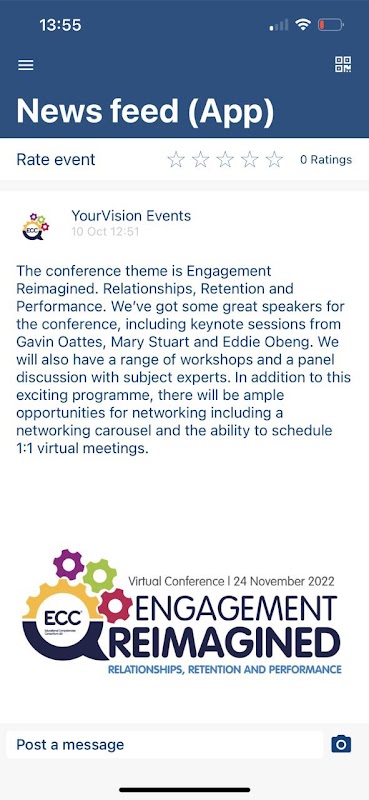 The conference theme is Engagement Reimagined. Relationships, Retention and Performance.