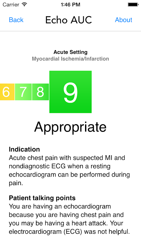 The ASE Echo AUC App provides a simple, practical approach for physicians to pursue additional professionalism in their daily practice in a more accessible and attainable way. The physician will be motivated to use this app because he/she will be able to have an immediately accessible source to make a quick decision for patient care that is backed up by expert opinion. The physicians will find it easy to use the free AUC App to stratify the patient, by disease and condition, into different treatment scenarios and determine quickly whether an echo should be ordered. They will also be prompted with information on how to best describe these testing limitations to the patient. They will then have more time to focus on the care of the patient and be able to eliminate extra, unneeded or overused testing. This App includes the 98 AUC indications for transthoracic echocardiogram (TTE).