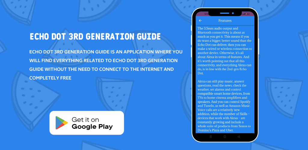 Remarque : Cette application mobile est un guide. Ce n'est pas un produit d'application officiel. Téléchargez ce guide pour en savoir plus sur Amazon Echo dot 3e génération.