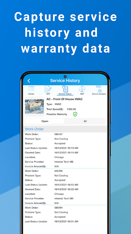 Lorsque l'équipement tombe en panne, faites une demande de service en moins de 30 secondes avec notre application mobile facile à utiliser et nous vous mettrons automatiquement en contact avec le fournisseur de services agréé pour venir le réparer. Ecotrak vous aide à suivre les cycles de vie de vos actifs, à saisir les garanties et à vous montrer où vont vos dollars de réparation et d'entretien.