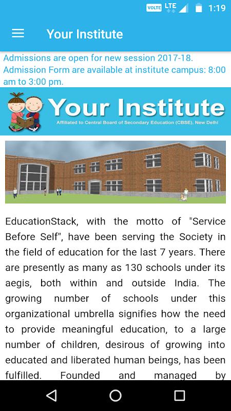 EducationStack est une application gratuite qui vous permet de vous connecter avec votre établissement d'enseignement, de recevoir des notifications et découvrir davantage sur les événements de votre institut. Principalement les parents, les tuteurs restent connectés avec les instituts de leurs enfants