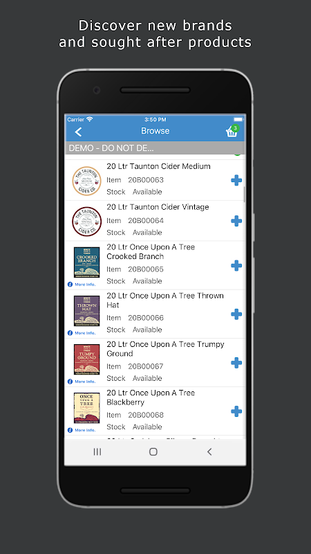 Une fois enregistré, vous pouvez parcourir nos listes de produits ou rechercher des produits par code de produit, par description ou en scannant un code à barres avec la caméra de votre appareil. Vérifiez rapidement et facilement la disponibilité des stocks, passez des commandes et recevez des promotions et des remises spéciales, le tout à partir de votre smartphone ou de votre tablette.