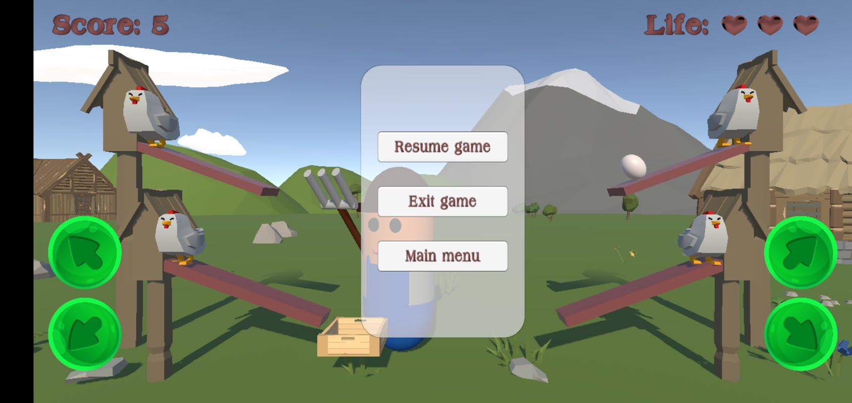 You are a great farmer and you are breeding hens. But your hens are super hens and provide you with constantly increased amount and speed of eggs. Be ready to catch them all!