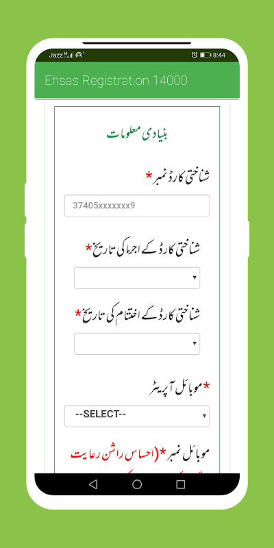 .Ehsaas program registration 8171 nadra