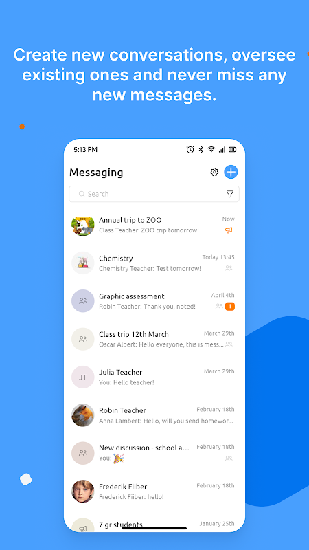 Laissez les groupes scolaires par e-mail derrière vous et gérez toutes les conversations liées à l'école dans l'application eKool Messaging. L'application de messagerie pour les utilisateurs du système eKool permet de communiquer avec les utilisateurs d'eKool, de partager des fichiers, des vidéos, des images et bien d'autres choses. Créez de nouvelles conversations, supervisez celles qui existent déjà et ne manquez aucun nouveau message. Essayez l'application eKool Messaging !