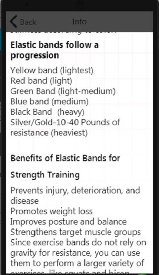 Notre application mobile montre les exercices sont effectués avec des élastiques. Il ya certains avantages à l'aide de bandes élastiques pour renforcer la Nov. Des exercices à faire avec des élastiques réduit les blessures, la posture de l'exercice assure l'aisance et la rend encore plus agréable.