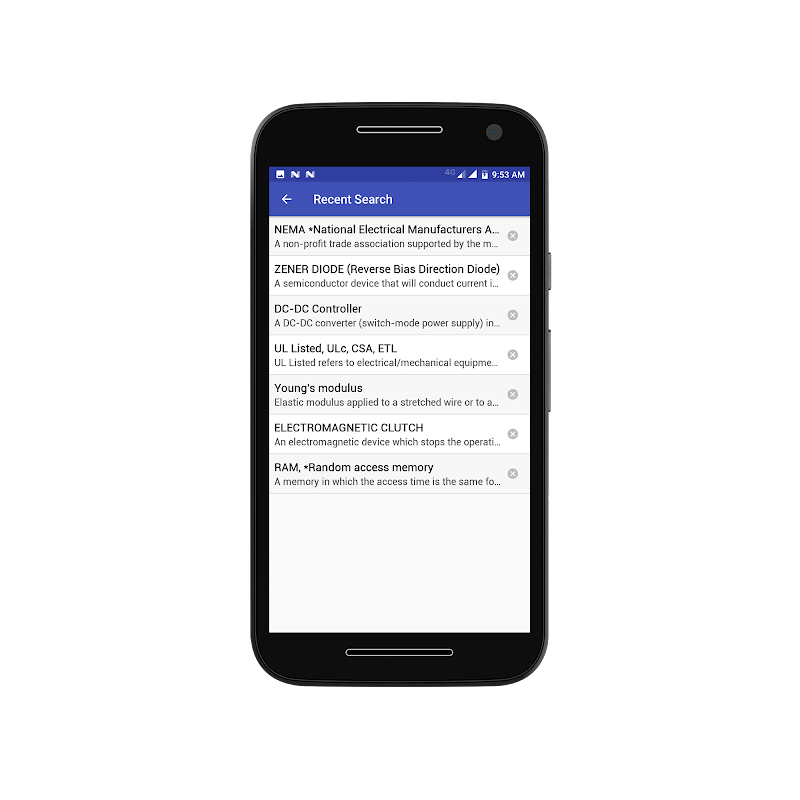 Free Offline Electrical Dictionary app containing words and their pronunciation , definition and synonyms for Electrical practitioners and students to look up the definitions and technical terms in a second.