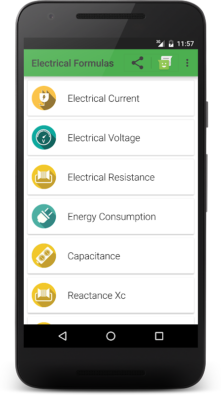 Vous pouvez trouver ci-dessous les formules électriques dans l'application: