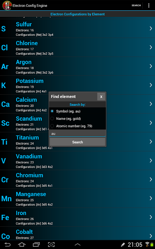 - Un moteur de calcul des configurations électroniques intégrant le principe Aufbau et toutes ses règles.