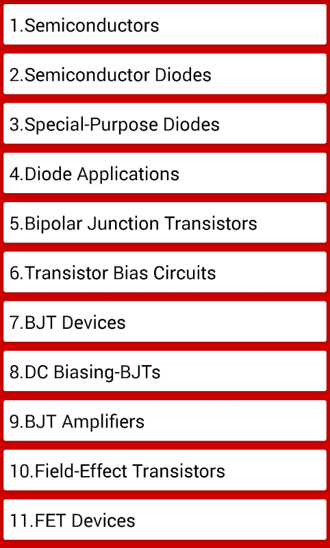 Cette application Android couvre tous les sujets, du niveau de base au niveau avancé d'ingénierie électronique. C'est la première application sur Play Store qui contient des milliers de mcq sur l'ingénierie électronique. Il contient fréquemment des questions dans les tests d’emploi et les entretiens dans toutes les organisations gouvernementales et privées. .