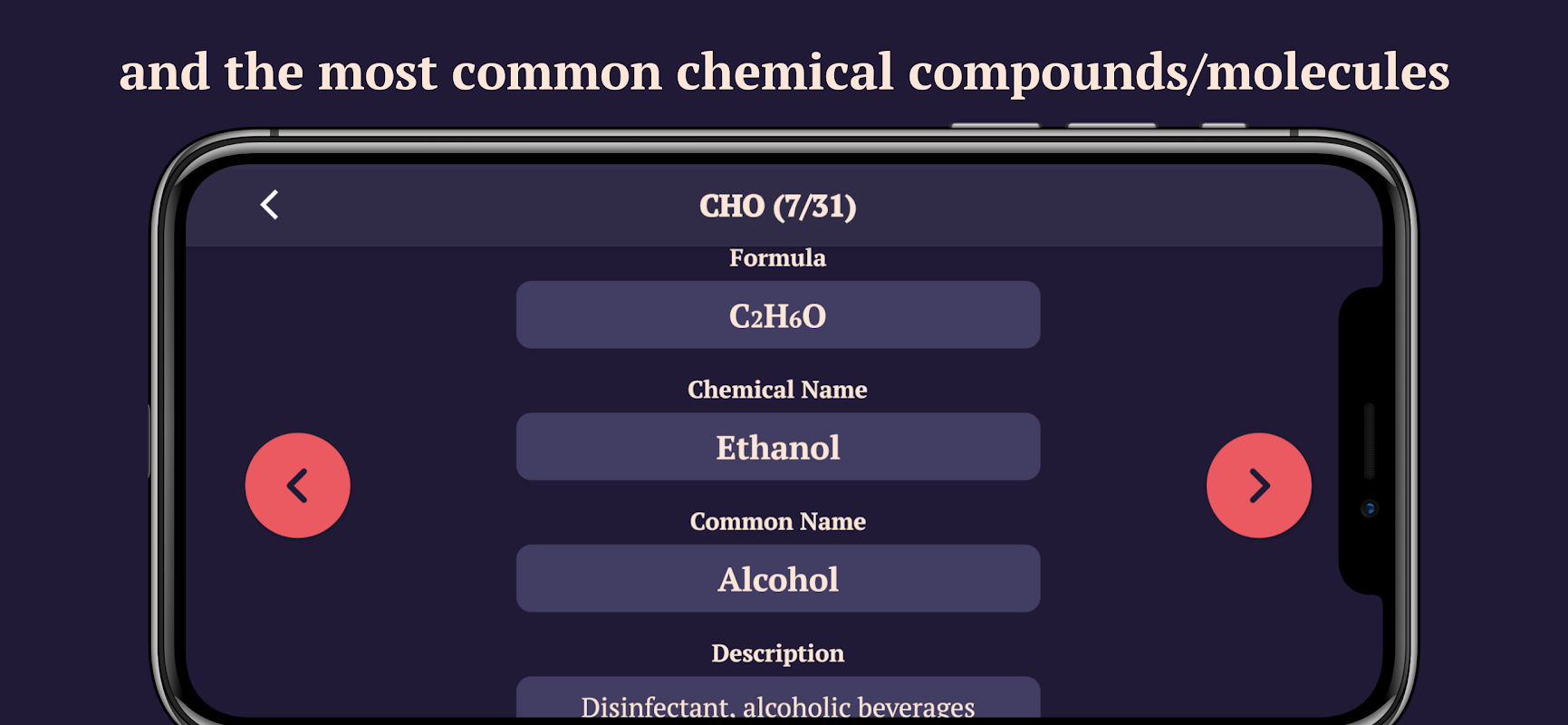 - 101 niveaux et 27 défis enseigner, former et tester 161 composés chimiques/molécules communs étroitement liés à notre vie quotidienne.