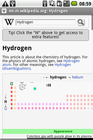 - Le tableau périodique (zoomable et dans certains dispositifs de pincement zoomable)