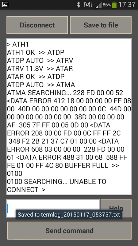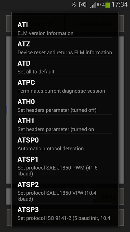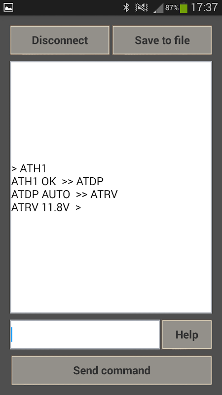 Cette application est un simple terminal qui prend en charge tous les périphériques commandes ELM327.