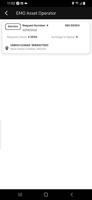 Communication transparente : l'application fournit un canal de communication transparent entre les agriculteurs et les opérateurs d'actifs EMO, leur permettant de discuter des exigences, de reprogrammer les services et de toute instruction spécifique liée à l'opération de pulvérisation des cultures.