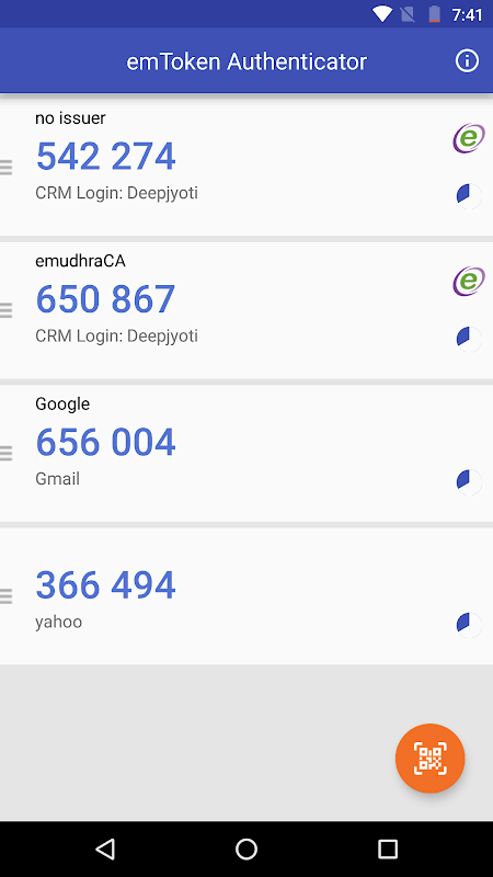 emToken Authenticator génère 2 étapes codes de vérification sur votre téléphone.
