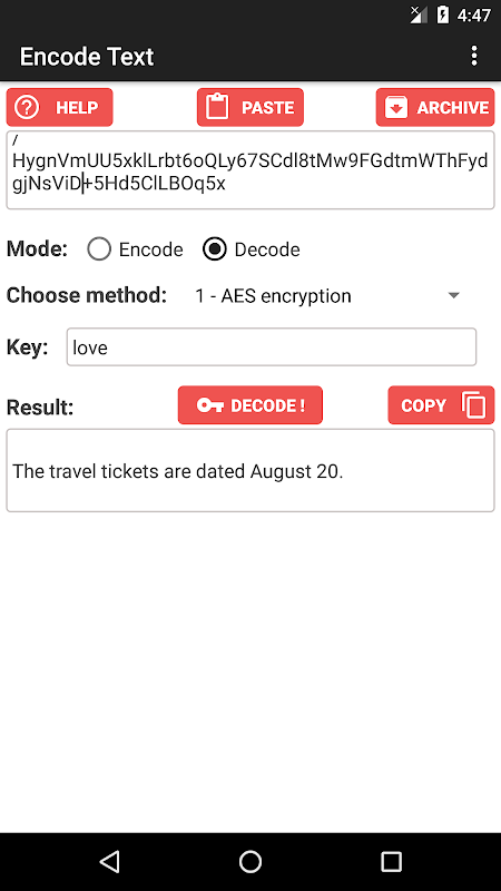 ✔ Keep a secret key with a friend to decode your encoded texts. So whenever send a message that you want to make sure that only the right person will read, encode text before and send.