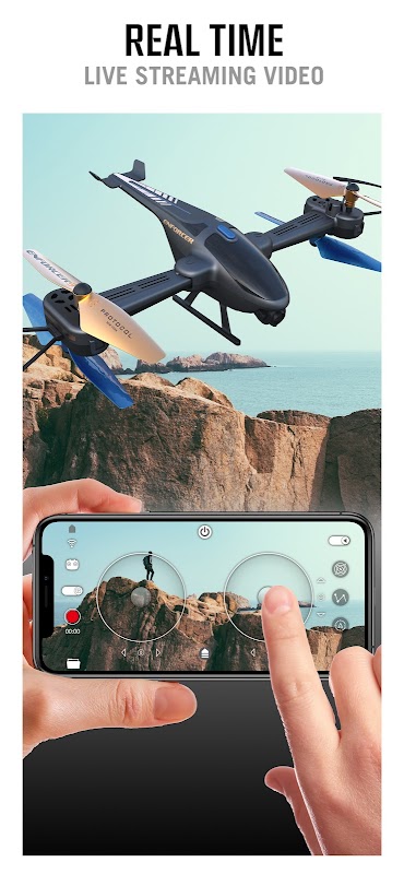 L'application connecte les smartphones et les tablettes au drone Enforcer de Protocol via le signal Wi-Fi intégré du drone.