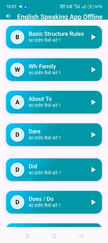 Application anglophone hors ligne en hindi pour cours et apprentissage en anglais