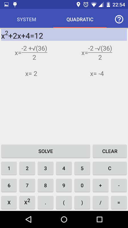 Il suffit d'écrire l'équation (s) et cliquez sur SOLVE.