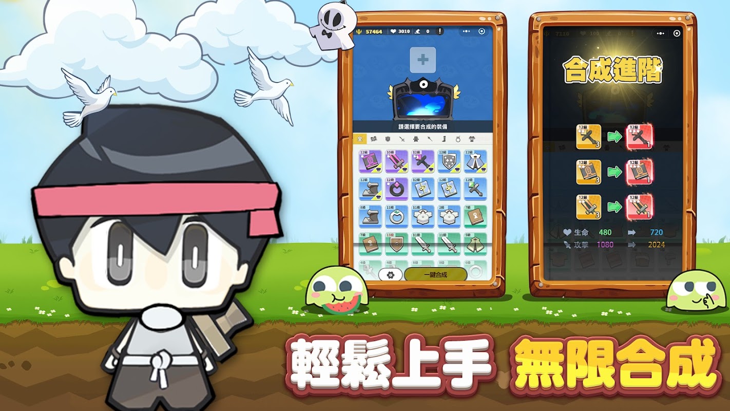 Vous pouvez facilement récolter de nombreux équipements en un seul clic ! L'équipement de bas niveau peut être combiné en équipement de haut niveau en un seul clic, et votre puissance de combat montera en flèche de façon exponentielle !