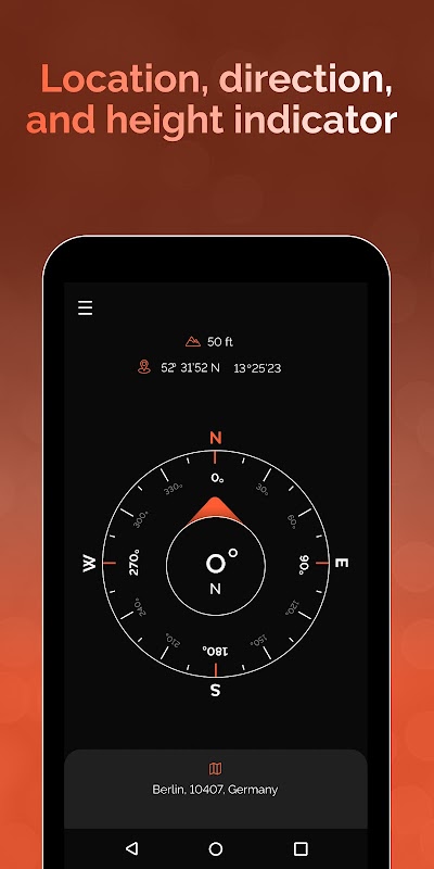 5. Altitude et coordonnées : accédez à des informations d'altitude en temps réel et à des coordonnées géographiques précises avec Essential Compass. Ces fonctionnalités sont inestimables pour les activités de plein air telles que la randonnée, l'alpinisme et le géocaching, fournissant des données essentielles pour une navigation et une cartographie précises.