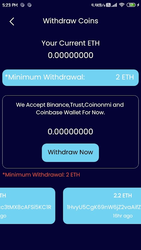 ETH est une dernière et nouvelle crypto-monnaie numérique qui a de bonnes valeurs à l'avenir. Nous fournissons l'exploitation minière ETH pour exploiter Etherium dans notre serveur cloud. Cette application vous permet d'accéder et de développer votre réseau social en parrainant des amis et de gagner de l'Etherium gratuitement.