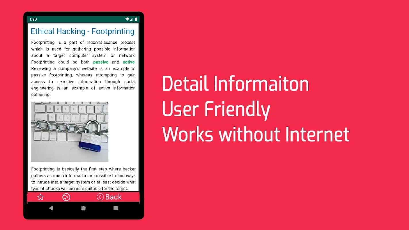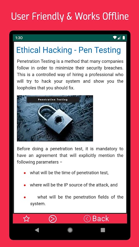 Ethical hacking books free app is enrich in information. It will give you most useful examples in detail. So now you can carry your ethical hacking complete guide anywhere by this app and can learn anytime.