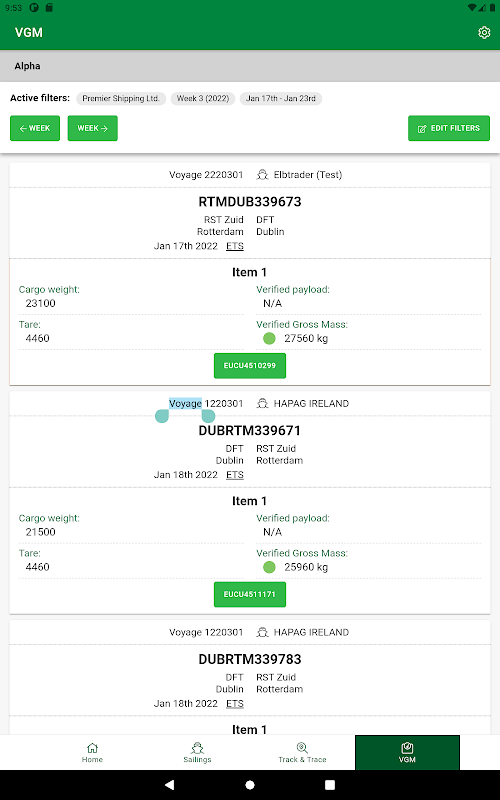 Avec les clients de l'application mobile Eucon et les fournisseurs d'Eucon Shipping and Transport Ltd. sont capables de suivre les expéditions, de trouver des départs ou de consulter les affectations de transport.