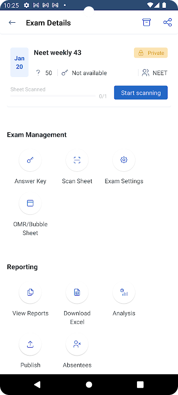 L'application EvalBee est conçue pour aider les enseignants à créer des examens à choix multiples basés sur des feuilles OMR et à générer des rapports en temps réel en numérisant la feuille OMR à l'aide de l'appareil photo du téléphone.