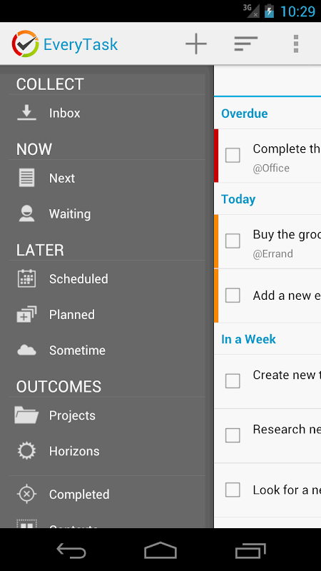 EveryTask est un GTD complet To-Do List et le Gestionnaire des tâches.