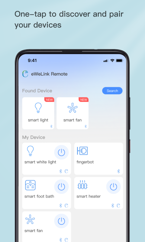 eWeLink Remote est votre plate-forme ultime pour gérer une variété d'appareils Bluetooth 2,4G et eWeLink-Remote. Il permet un contrôle rapide et précis, faisant d'eWeLink Remote le hub central pour la gestion des appareils Bluetooth de votre maison.
