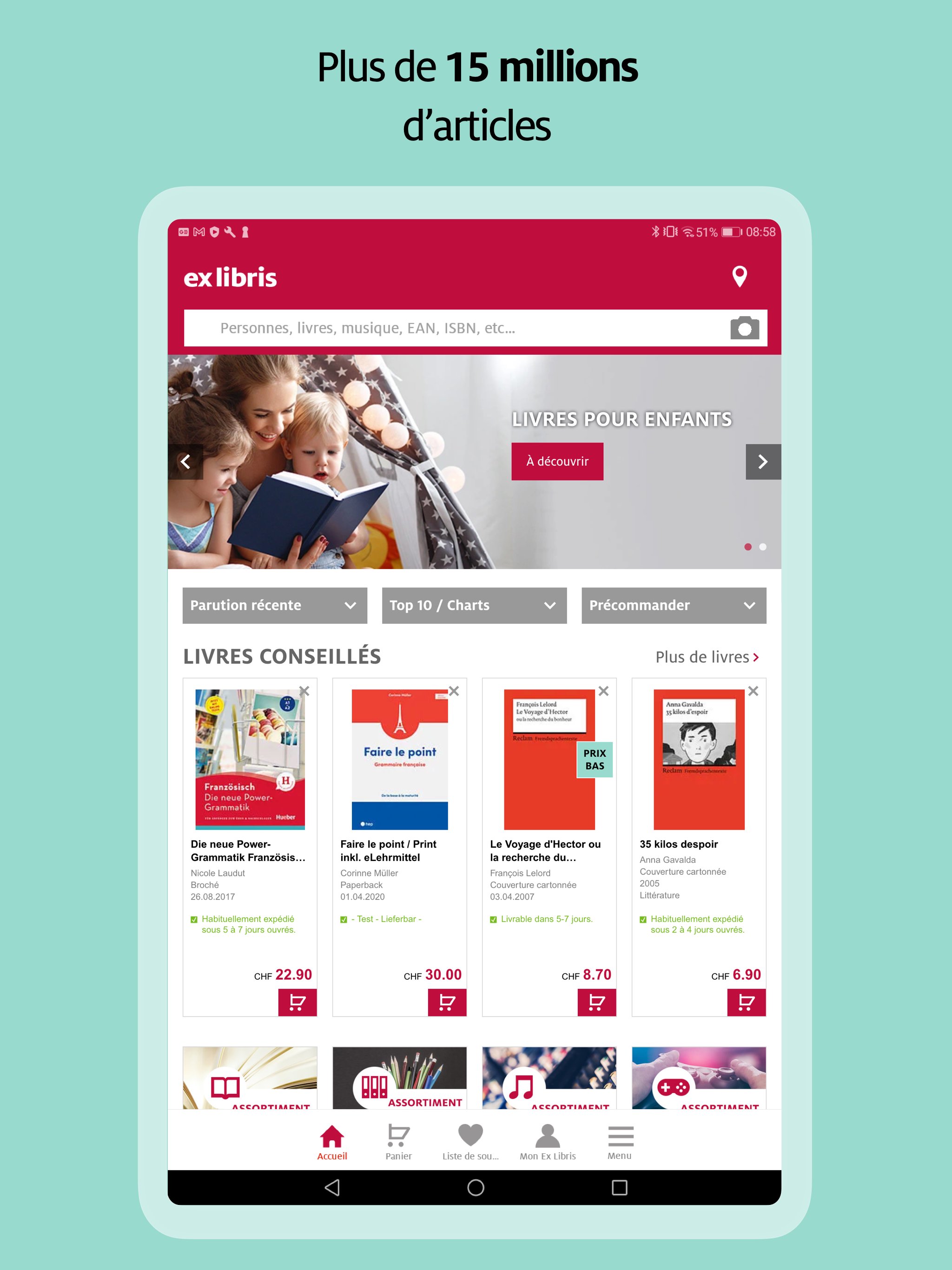 Parcourez notre assortiment de plus de 15 millions d’articles. Grâce à l’appli Ex Libris, découvrez facilement les livres tendance ou les derniers jeux vidéo.