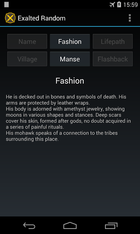 Get the source code at https://github.com/UrsKR/exaltedandroid if you want to contribute! No need to program if you just want to extend the tables!