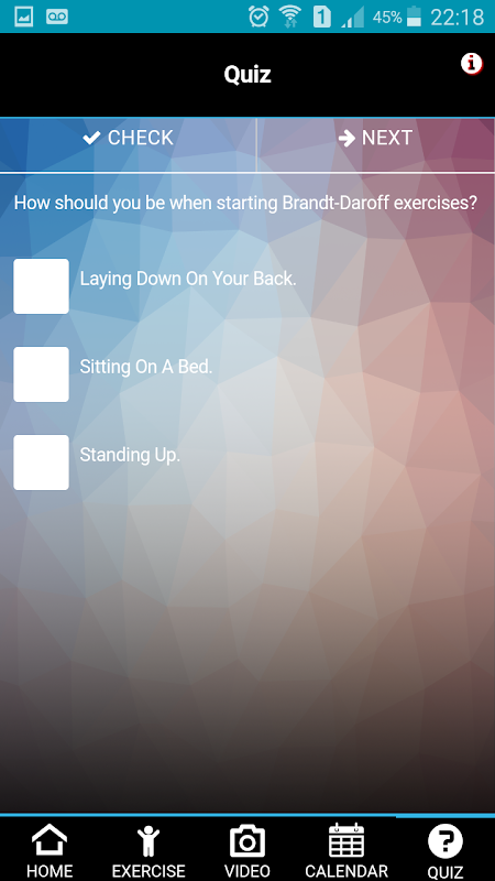 The Exercise Vertigo app teaches the user simple, safe and adequate exercises to deal with Vertigo, using interactive tools such as images, videos, calendar with exercise register functionality to keep track on symptoms and exercise frequency and type of activity. The user can then export it to show it to the doctor. Besides, the user can test its knowledge regarding Vertigo in an amusing way through a little and fun quiz.