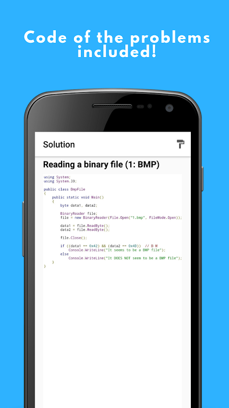 Un cours de programmation C# dans votre poche. Apprenez ou renforcez vos compétences en tant que programmeur avec plus de 200 problèmes et exercices pratiques en C#. Tous les codes des exercices sont inclus dans l'application.