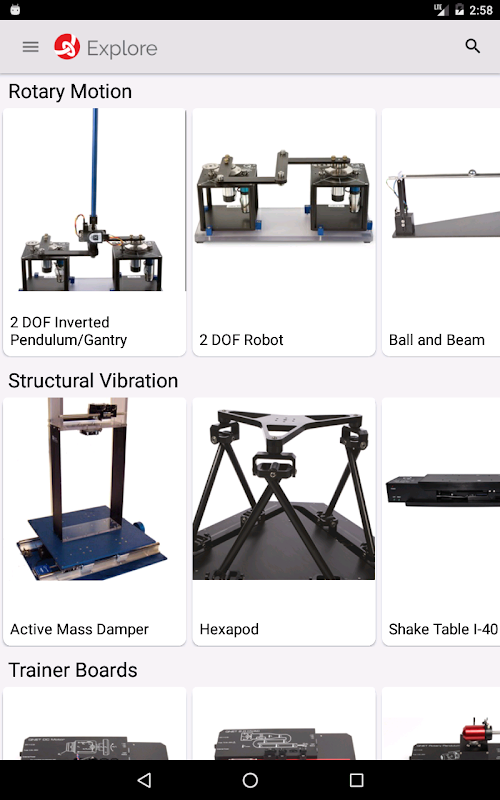 Quanser est le leader mondial de la mécatronique, la robotique et les plates-formes de contrôle optimisées pour le milieu universitaire. Explorez Quanser est une application interactive remplie d'informations sur les produits, des images, des vidéos et des exemples interactifs de nos solutions de laboratoire.