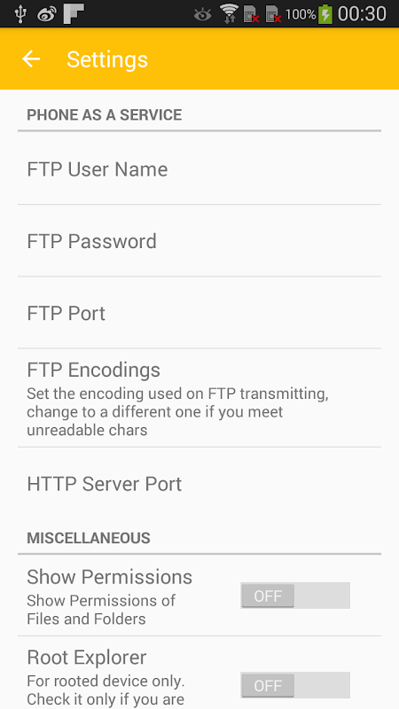 * Partage FTP - Lorsque le service ouvert, éteignez votre téléphone mobile en un serveur FTP. Partagez et gérez vos fichiers sur un autre FTP