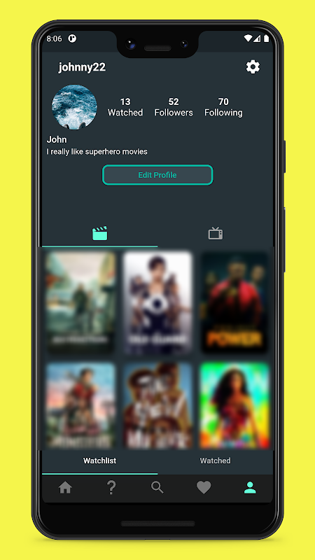 - Keep track of what you are watching by having a separate personal watchlist and watched category for movies and tv shows