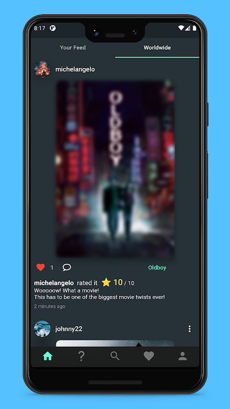 - Your own personal news feed where you can see what your friends are watching, and you can comment and like their reviews.