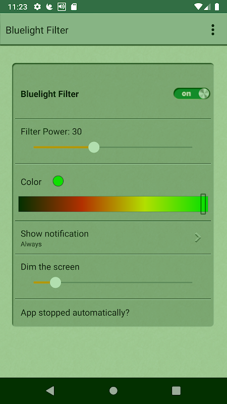 4.Notification sur la barre d'état afin que vous puissiez facilement activer ou désactiver le filtre.
