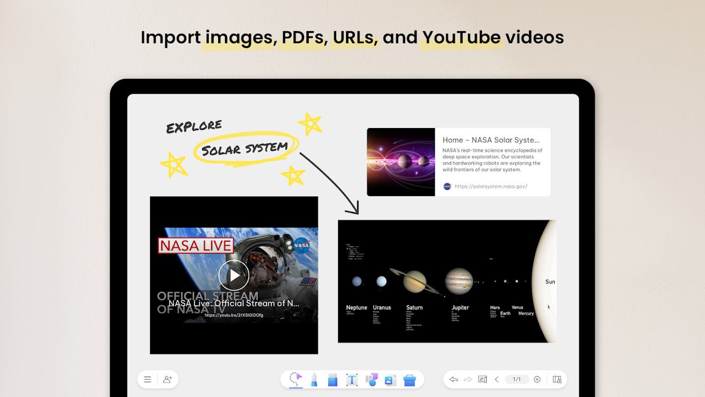 - Importer des images, des PDF, des URL et des vidéos YouTube