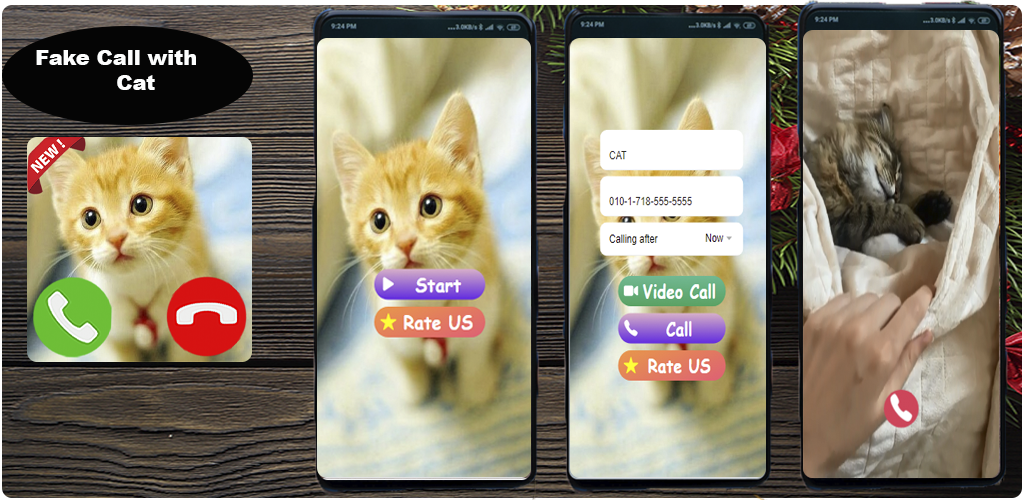 Nous vous présentons notre application "Fake Call from Cat Game Simulator" avec laquelle vous pouvez faire des farces à vos amis et plus encore!