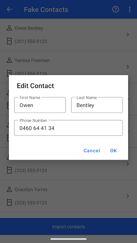 🚀 Importation en masse en un clic : Générez et ajoutez facilement des centaines de faux contacts à votre appareil en quelques secondes.