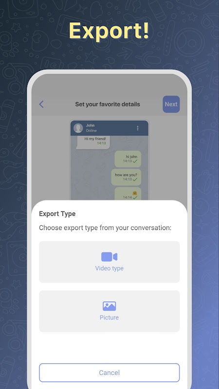 - Possibilité d'exporter depuis l'écran de chat en 2 types :