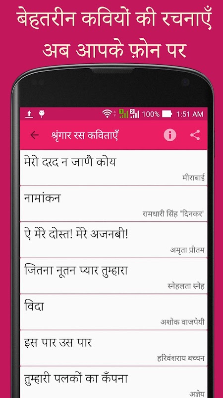 Hindi kavitao ke ke les fans liye Hindi App kavita. पढ़े प्रसिद्ध कवियों की रचनाये |