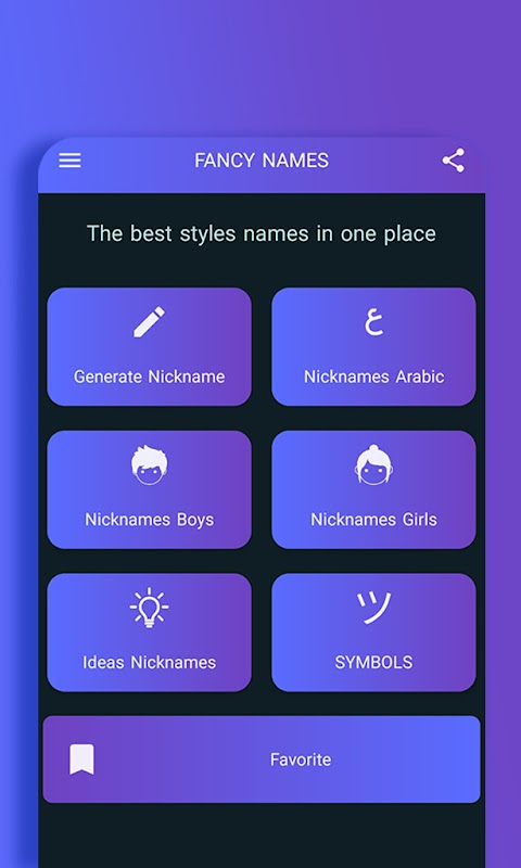 Êtes-vous un fan de jeux? Voulez-vous des surnoms uniques pour vos jeux ? Que diriez-vous de styliser votre nom ou votre surnom ? ! Vous aimez le style ? ! Avec cette application de générateur de surnoms cool, vous pouvez changer votre nom en un nom cool et élégant avec des polices élégantes et les meilleures polices. Ce générateur de nom gratuit aide à résoudre le problème constant auquel sont confrontés les joueurs de 'Le surnom est déjà pris', vous pouvez utiliser ce chercheur de surnom de jeu et afficher votre nom plein de polices élégantes et d'art fantaisiste ou simplement personnaliser votre bio avec du texte fantaisiste.