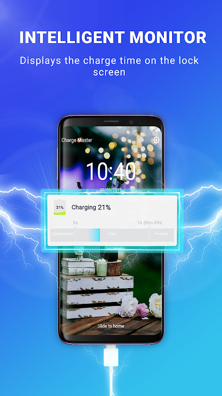 Vous pouvez facilement suivre l'état de la batterie, la charger plus rapidement et plus efficacement, et le chargeur intelligent estime le temps de charge avec précision. Protégez votre téléphone contre la surcharge et optimisez la durée de vie de la batterie, chargeur ultra rapide.