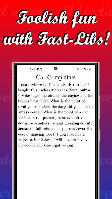 L'application Fast-Libs a été créée pour jouer, créer et partager des mad-libs. Le nom « mad-libs » vient de « ad-libs ». Ad-libs vient de l'abréviation latine « Ad libitum », qui signifie « à sa guise » ou « comme on le souhaite ». L'application propose à l'utilisateur une histoire où certains mots peuvent être modifiés « à sa guise ».