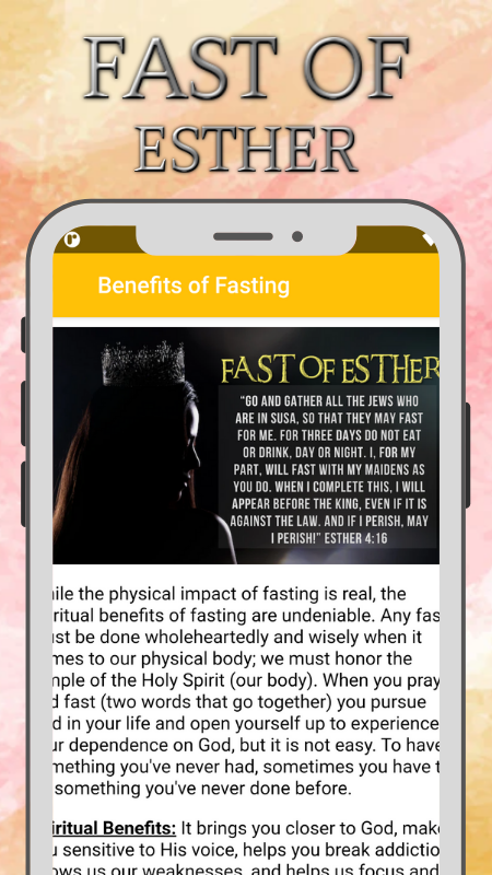 Esther's fast was decisive, forceful and shocking that shook the spiritual, social, economic, religious, moral, political and governmental structures. This fast is conducive to moments where the siege of the enemy has reached extremes to issue death decrees.